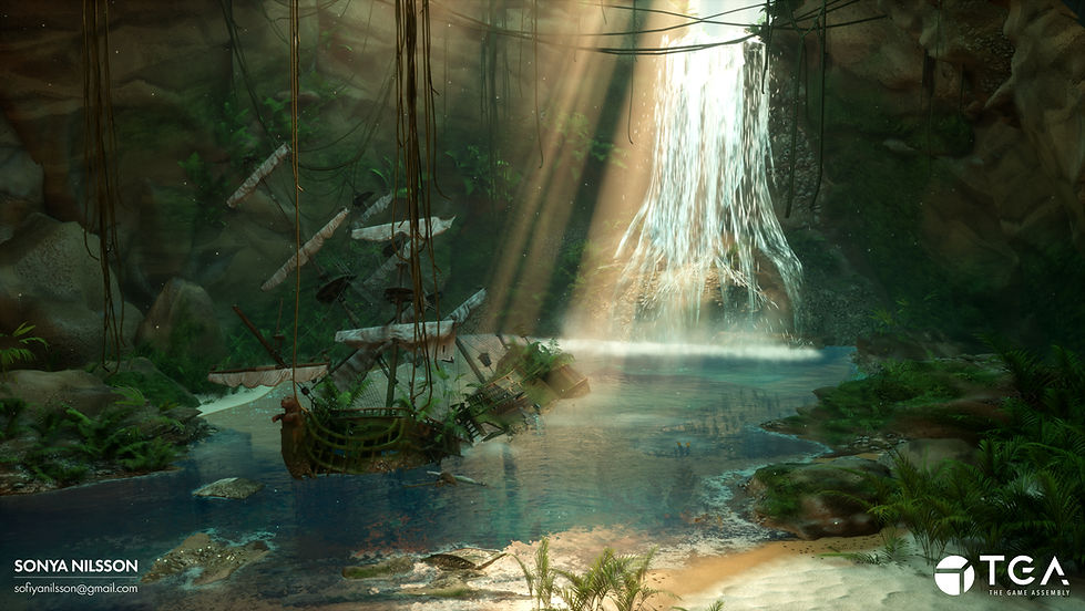 Pirate Ship (fbx, texture), TIG from SketchFab here. The ship FBX was modified in Houdini and Blender.
