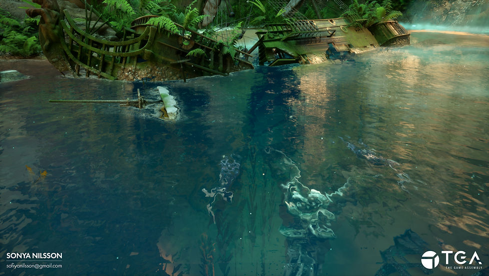 To display the water shader in a natural environment, I used procedural tools such as procedural modeling, PCG, and shader animations in my development to build up the scene.